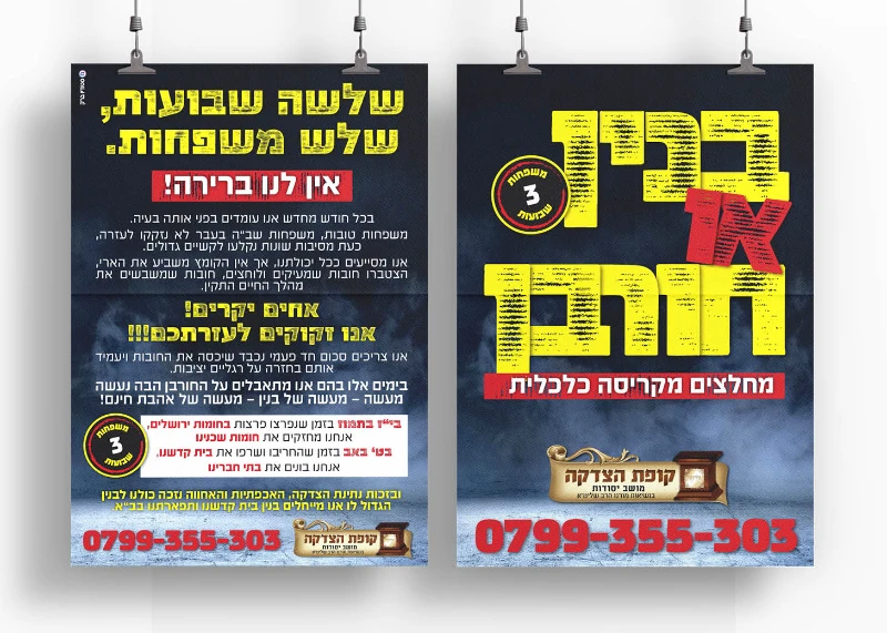 כמו בכל פרויקט, גם כאן הושקעה מחשבה אסטרטגית, הבנה עמוקה של מטרות העמותה, וניסיון מקצועי בעולם העיצוב החברתי. כל קמפיין הוא הזדמנות לייצר חיבור רגשי, להעביר מסר מדויק ולחזק את ההשפעה של הארגון בשטח.