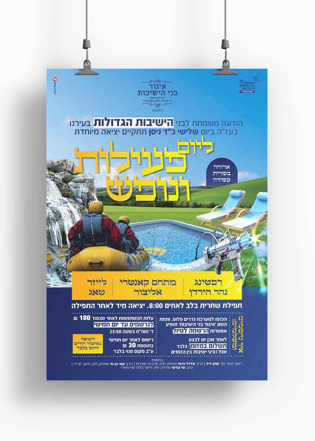 בעיצוב של דברים כאלה שממומנים ע"י עיריות יש צורך ללכת על ביצים. גם להשביע את רצון נותני החסות. גם להשביע את רצון הרכזים והמארגנים, וגם למשוך את קהל היעד שלנו שהוא בחורי הישיבות. צריך פה עיצוב מסוים שקשוב לכל הדברים הללו. ב"ה היתה הצלחה רבה, הם כל כך נהנו, שהמשכנו לעבוד יחד גם בזמן הבא
