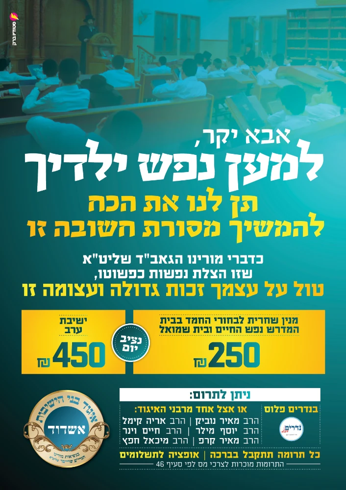 קמפיין גיוס הוראות קבע וביסוס התרומות הקבועות איגוד בני הישיבות אשדוד