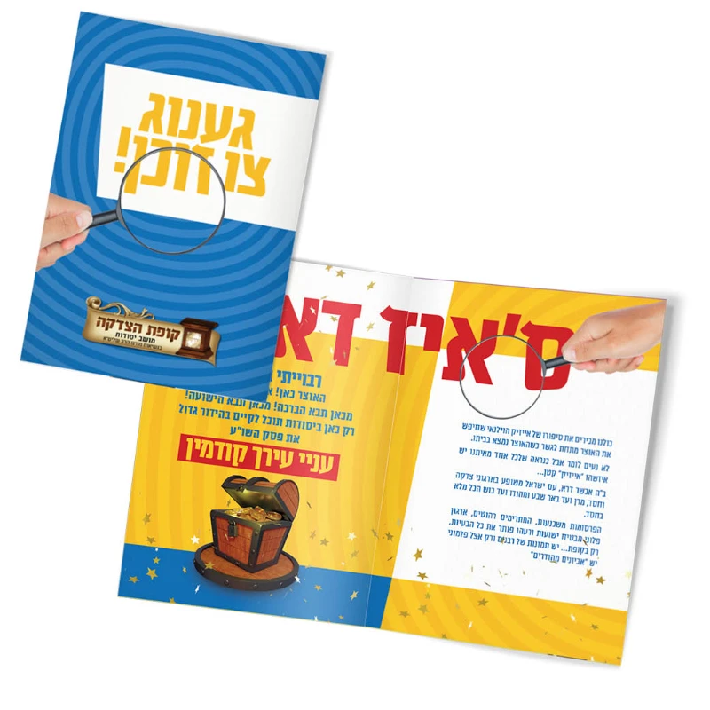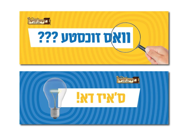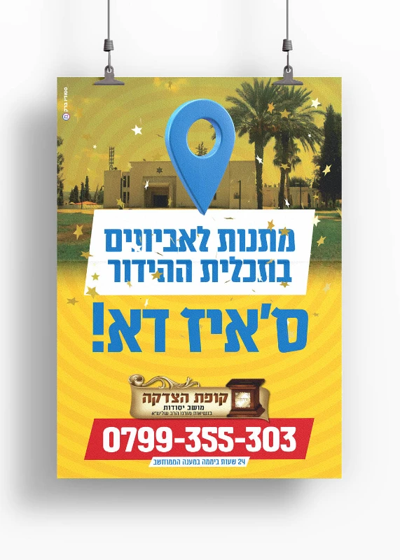 מושב יסודות הוא מושב שיתופי שבו כולם שותפים של כולם, וכולם משפחה של כולם. הקמפיינים שם מתמקדים בשותפות ובאחריות אחד לשני. את הקמפיין פתחנו בטיזרים דוקא באידיש!! כדי ליצור ענין ושיהיה דיבור על זה, ככה מי שמבין מסביר למי שלא מבין ונוצר שיח. הרעיון היה לשאול מה אתה מחפש? זה נמצא כאן! כלומר אל תחפש לתרום במקומות אחרים. תן את המתנות לאביונים שלך כאן אצלנו במושב כי אתה קודם כל אחראי לעניי עירך ולמשפחתך. ב"ה היתה היענות מדהימה ונוצר שיח שלם. חילקנו גם ברכות למגילת אסתר עם קריצה שתוסיף לכל הקונספט (די לחפש בסידור, זה כאן!)